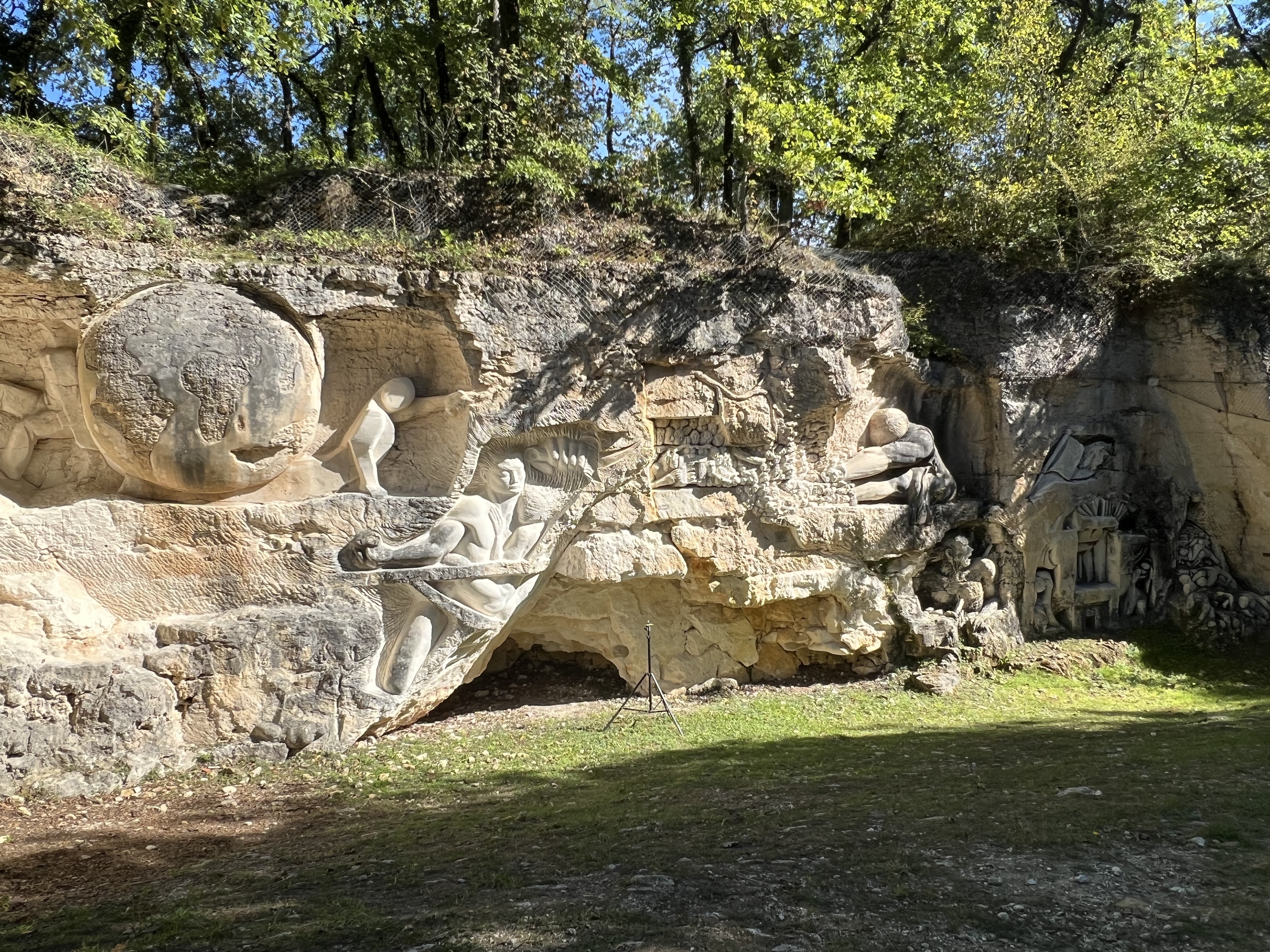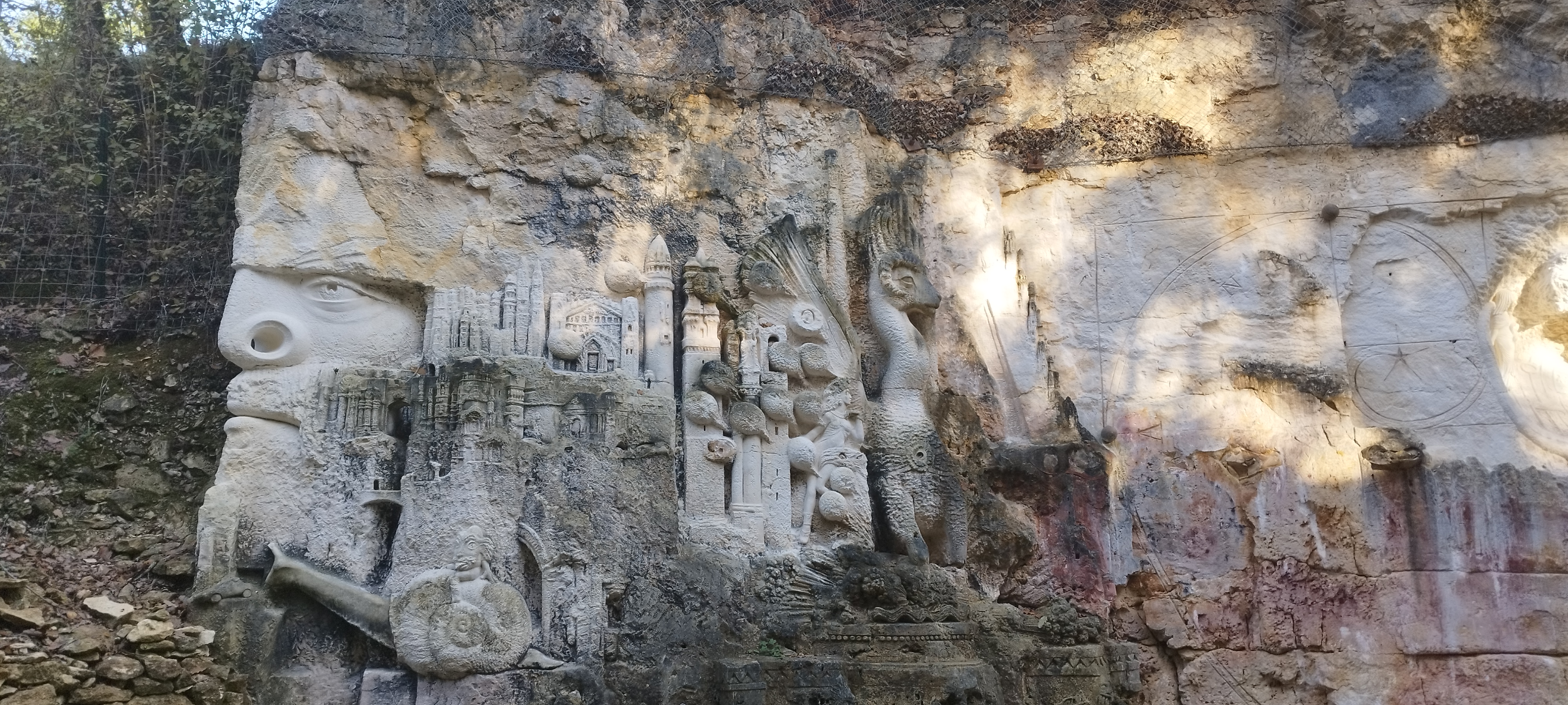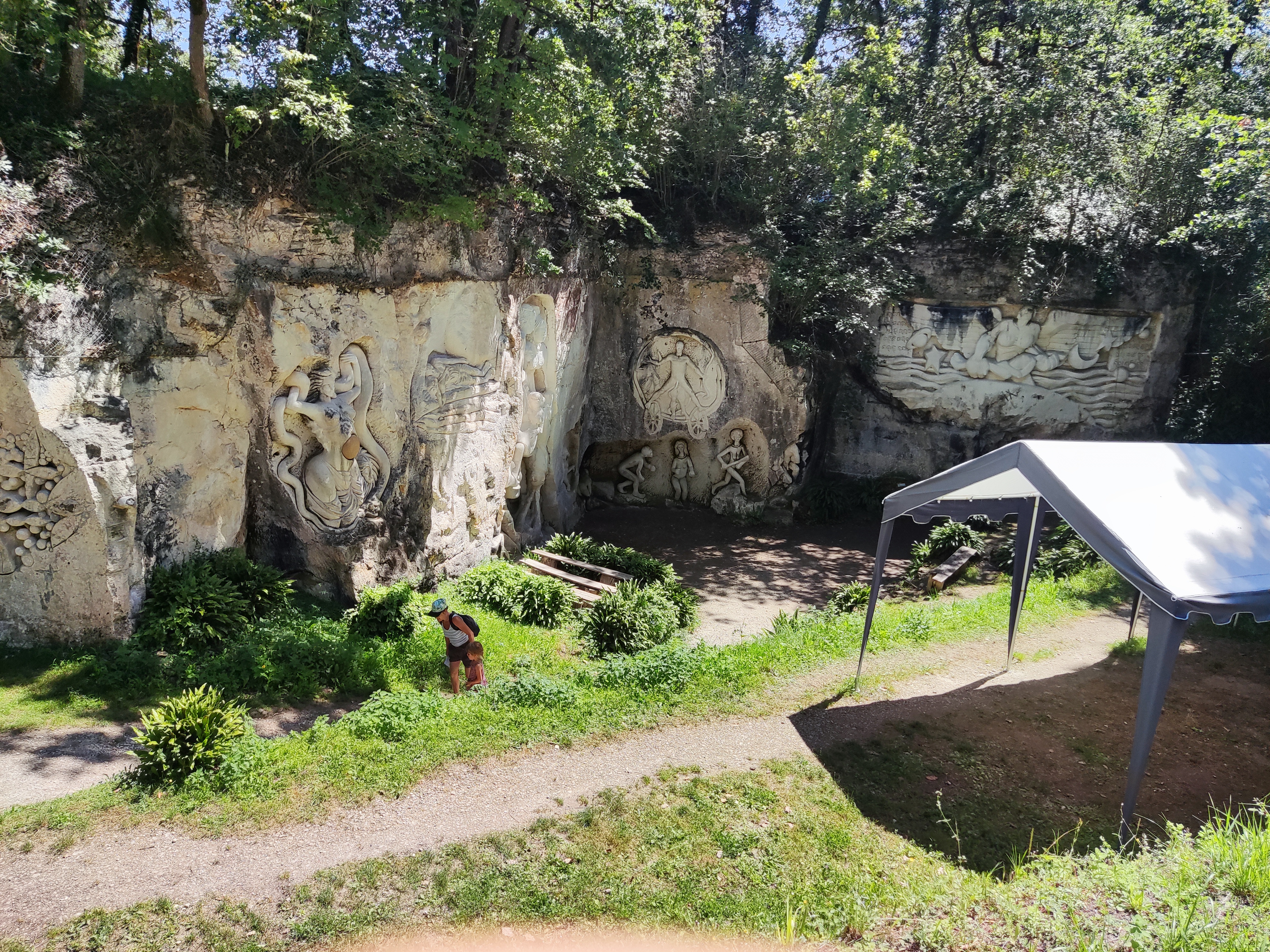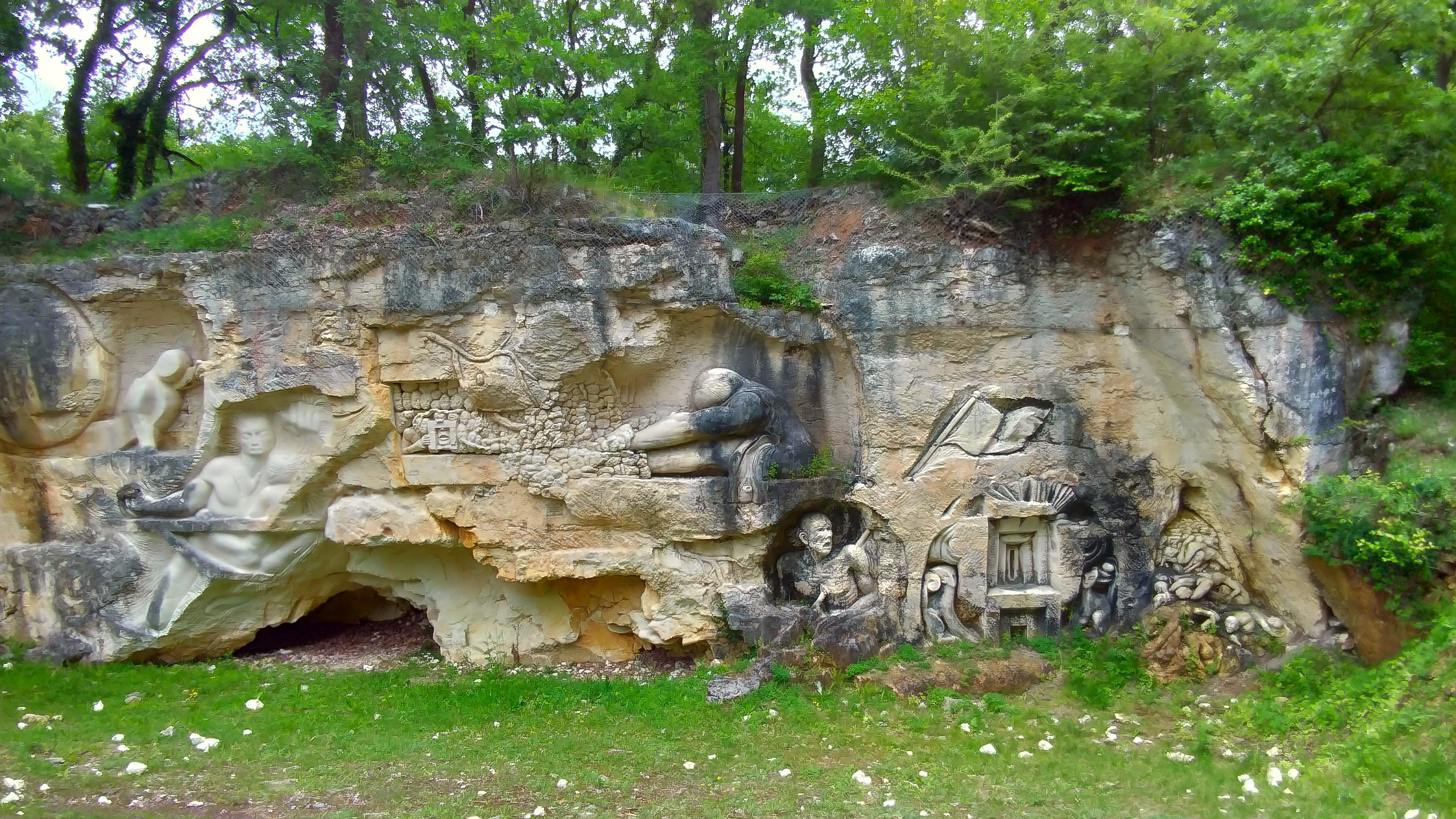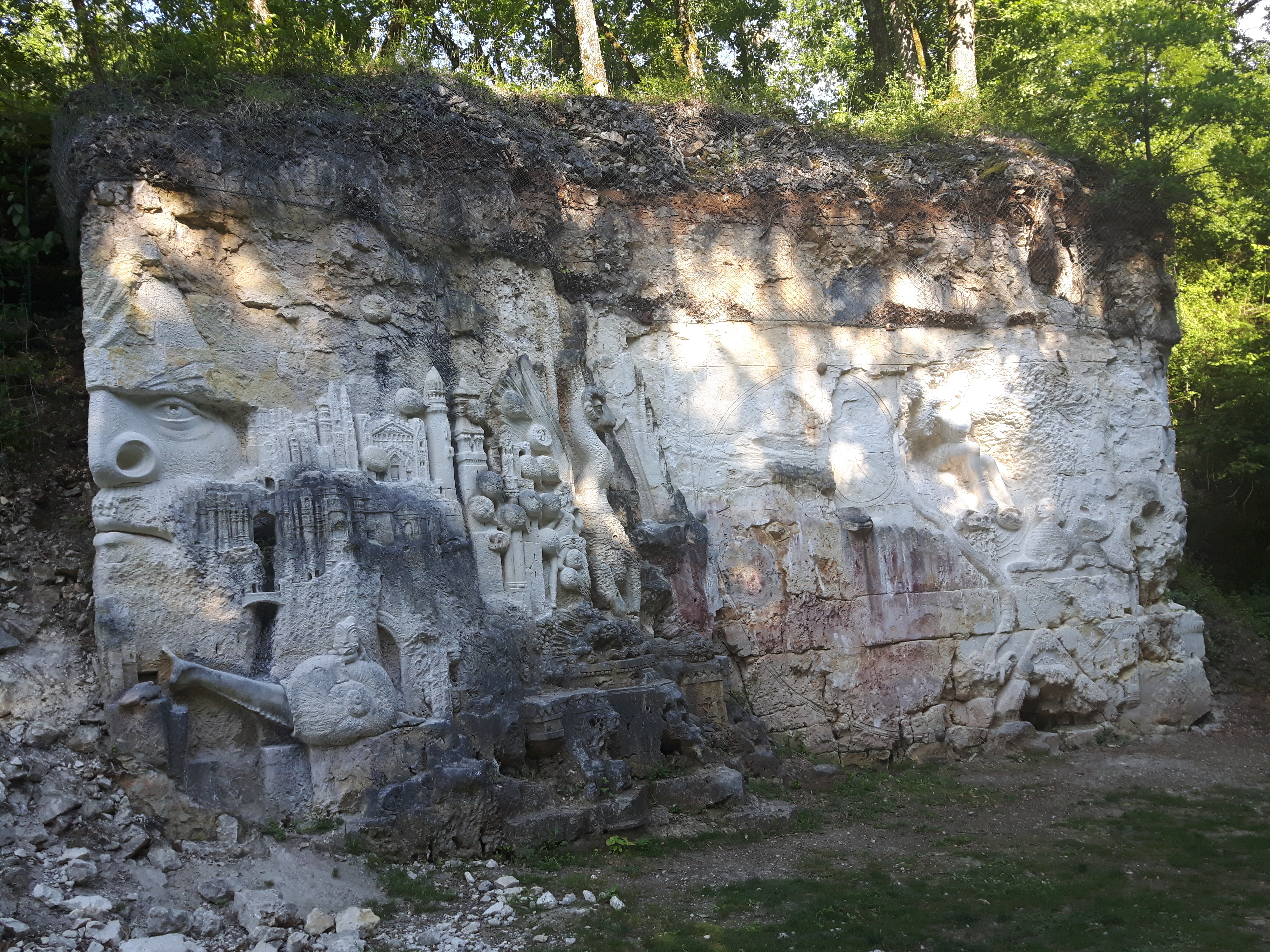 Je recommande cette visite. Et surtout n'hésitez pas à faire plusieurs fois le tour. On y découvre de nouvelles choses à chaque passage. La réalisation de ces oeuvres sculptées à même les flancs de carrière sont magnifiquement fini. Il est conseillé d'y aller le matin ou le soir pour apprécier la lumière naturelle du soleil qui donne un relief et une profondeur aux sculptures et permet de faire de belles photos. Possibilité de pic niquer sur place ou dans le bois allant tour.