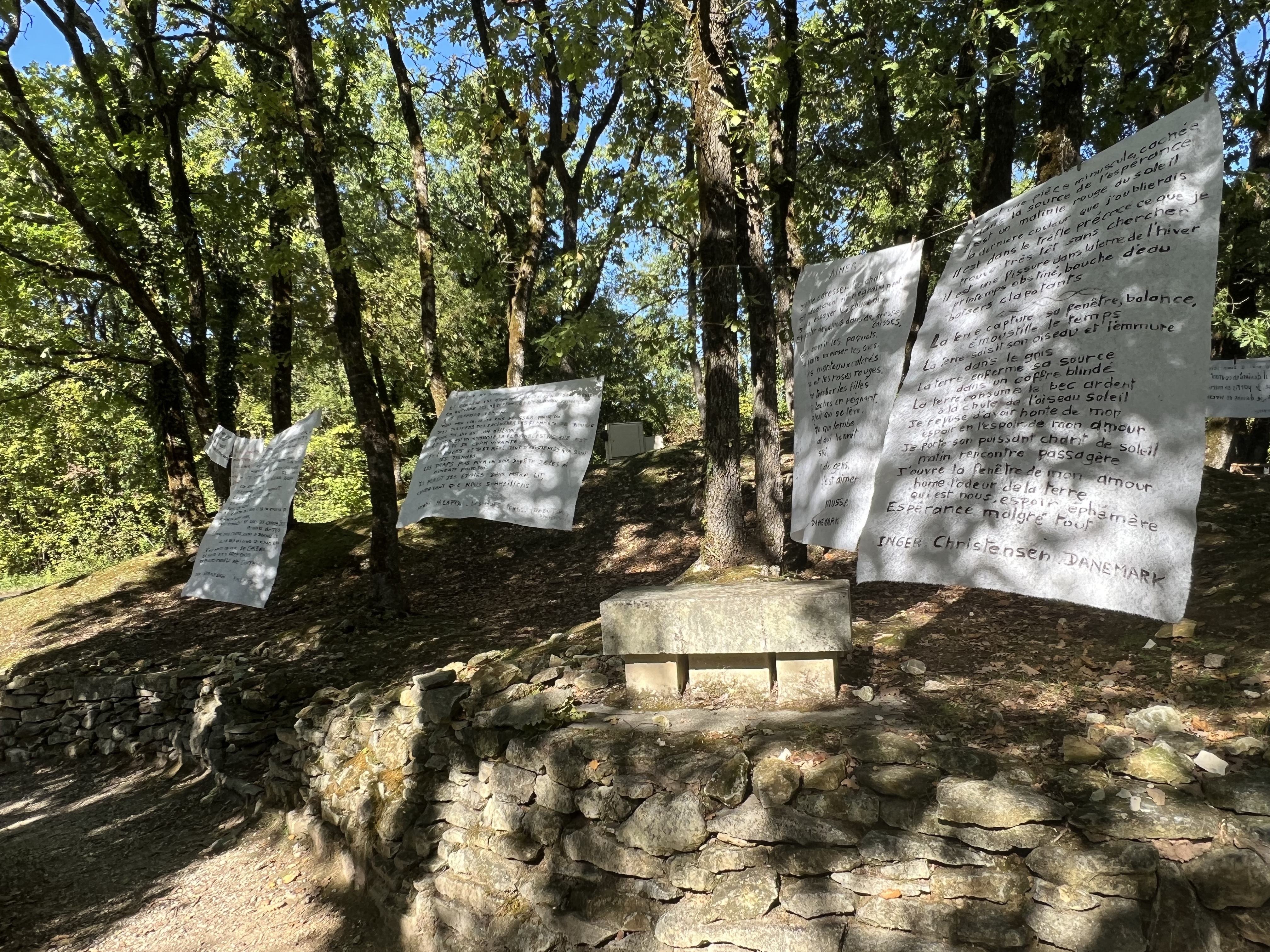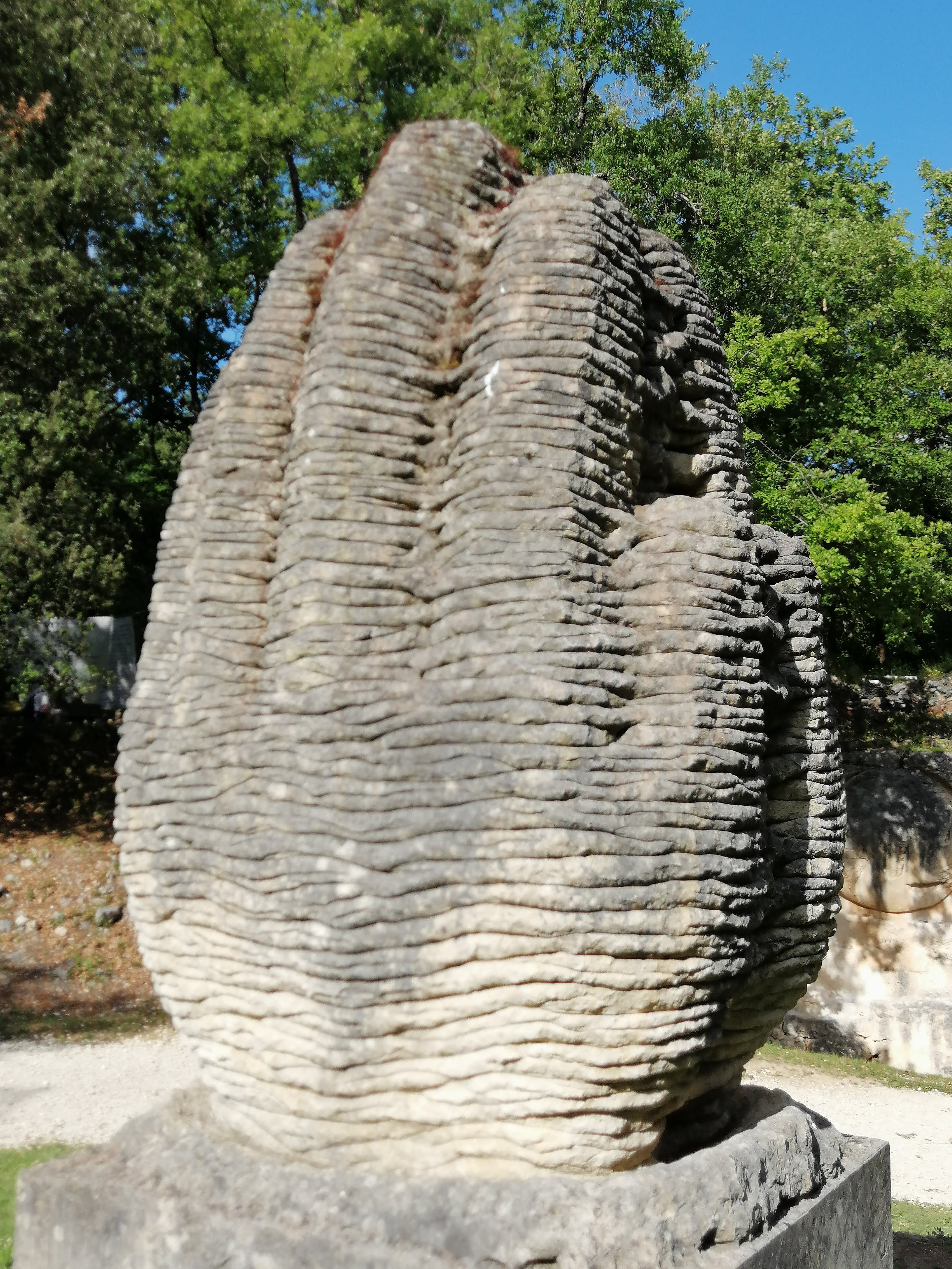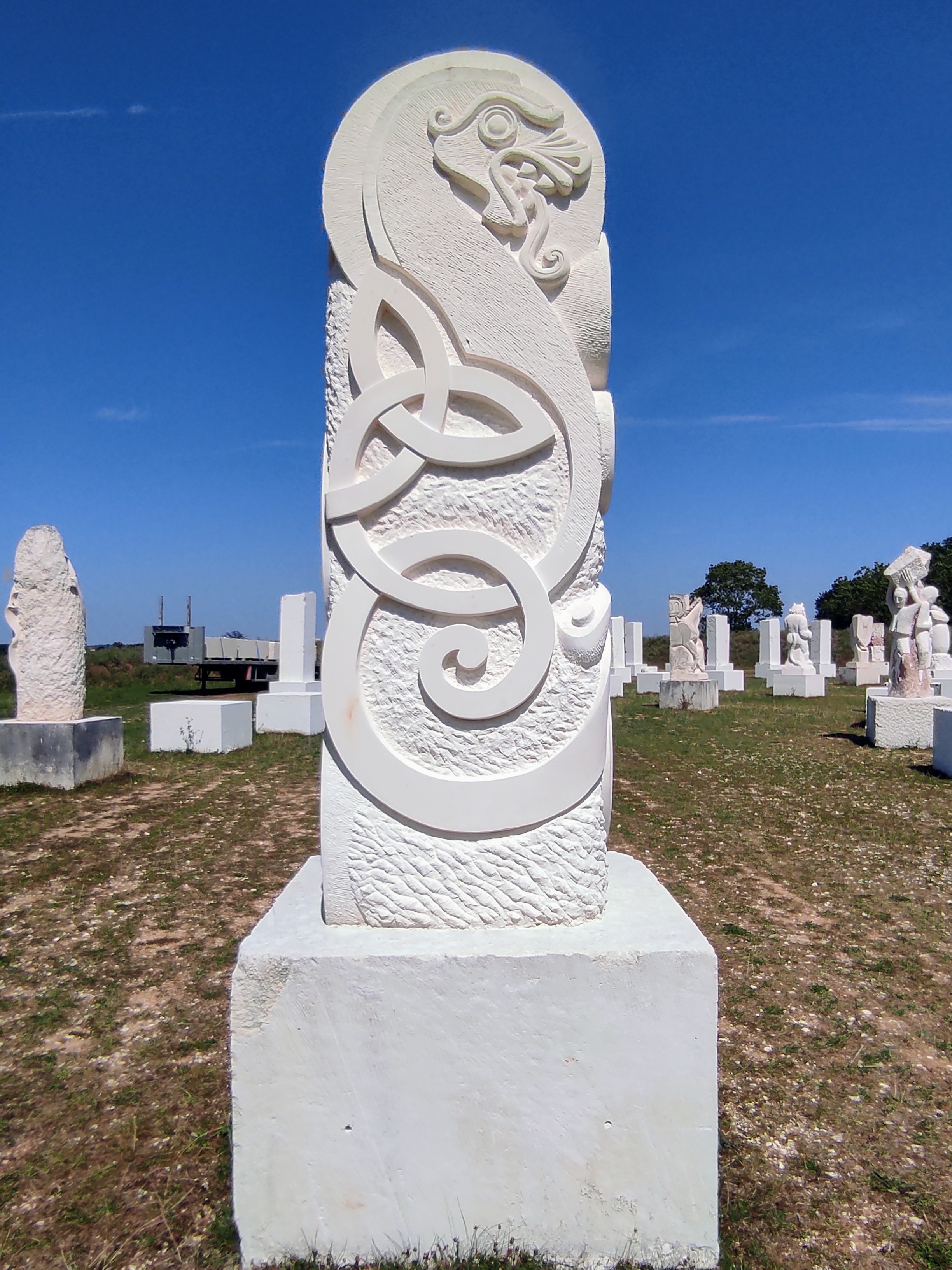 Un cadeau magnifique, une œuvre commune réalisée par plusieurs sculpteurs travaillant individuellement. Un lieu magique, libre d'accès, la culture lapidaire est offerte par de généreux plasticiens, un projet qui m'inspire beaucoup de respect, merci à Alain Tenenbaum et aux autres fondateurs. A lire, Le Manifeste Des Lapidiales : cette réalisation participe au projet de l'UNESCO de préserver l'exception culturelle en l'écartant des contraintes marchandes de l'OMC.