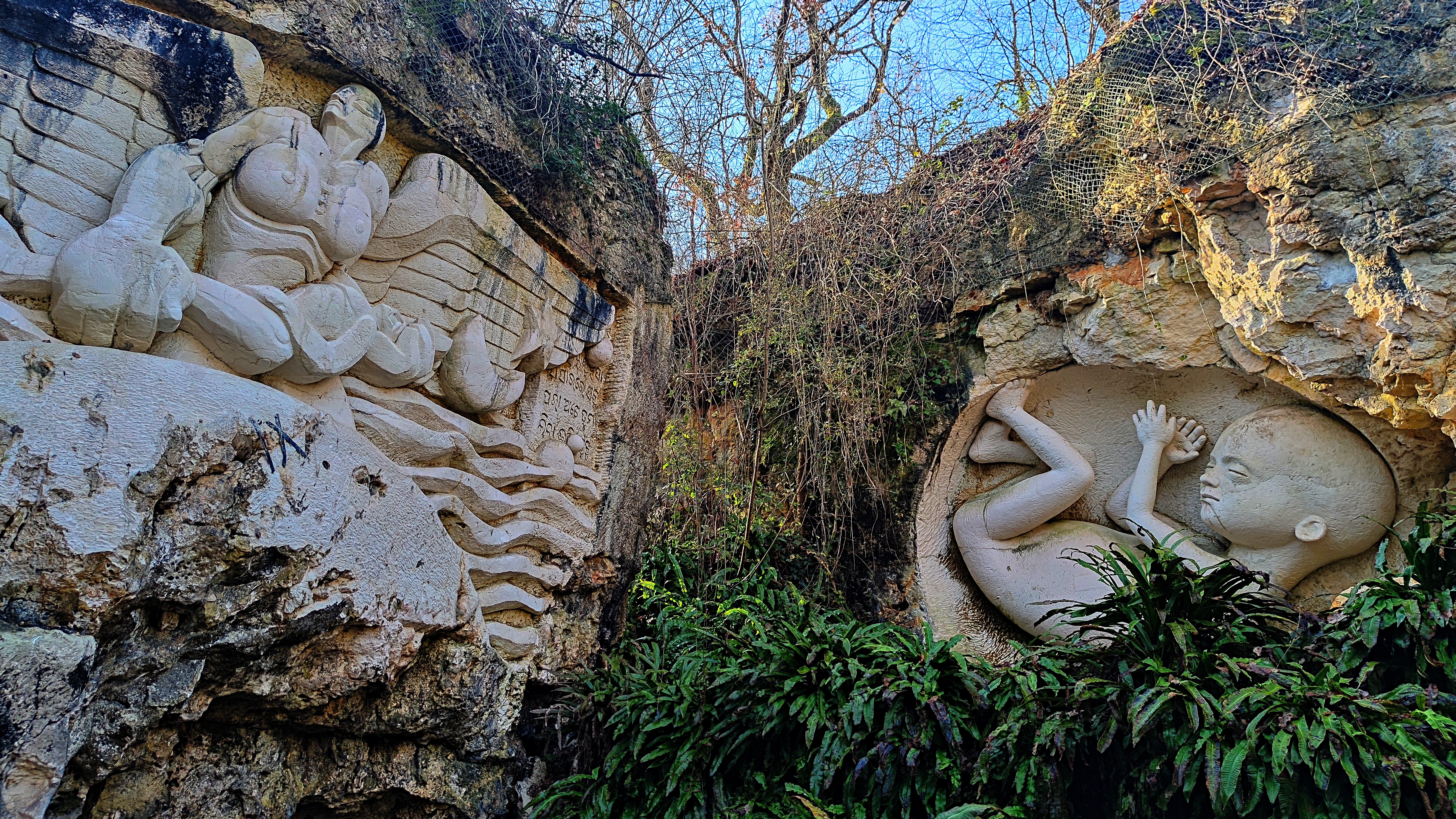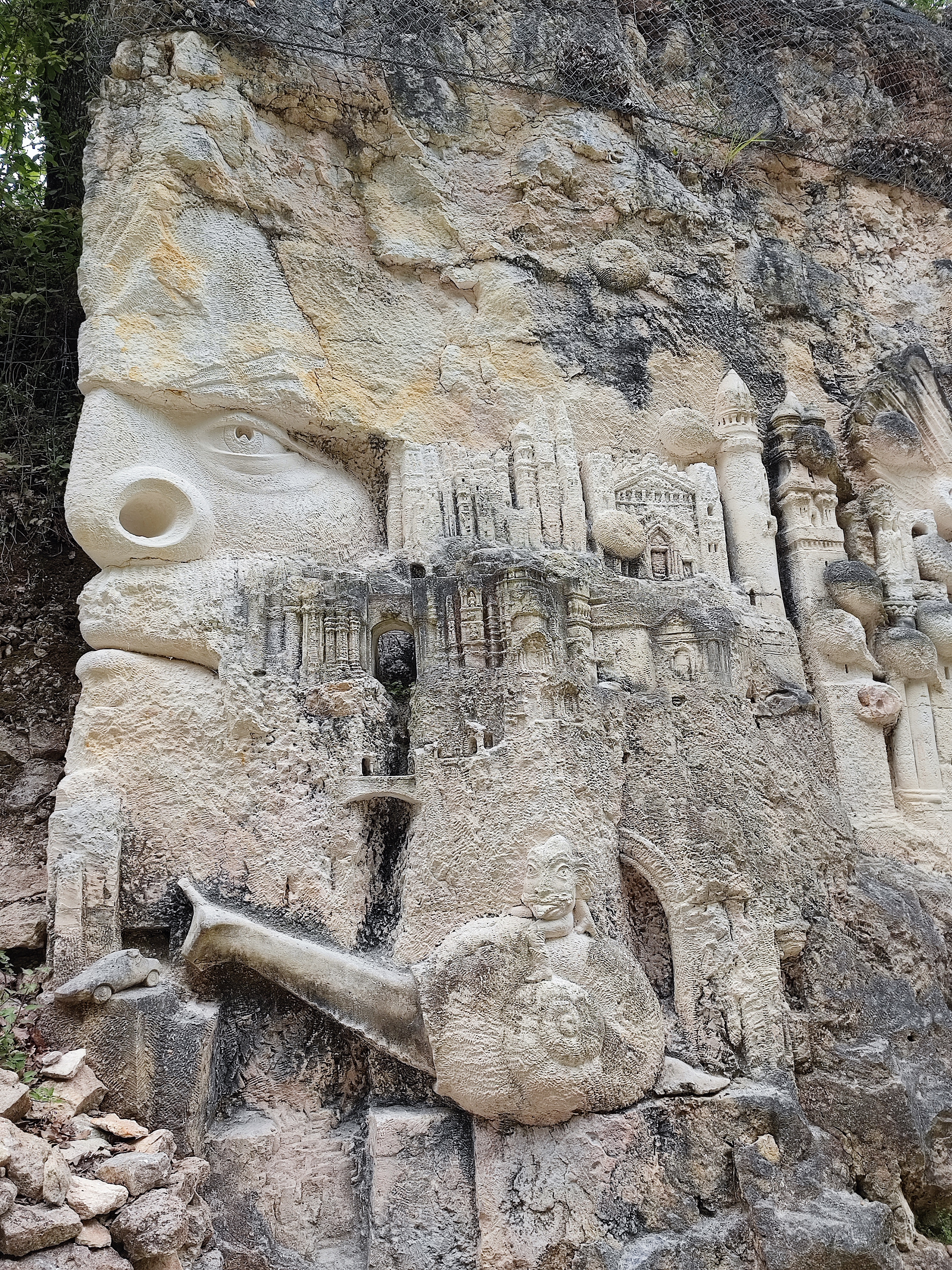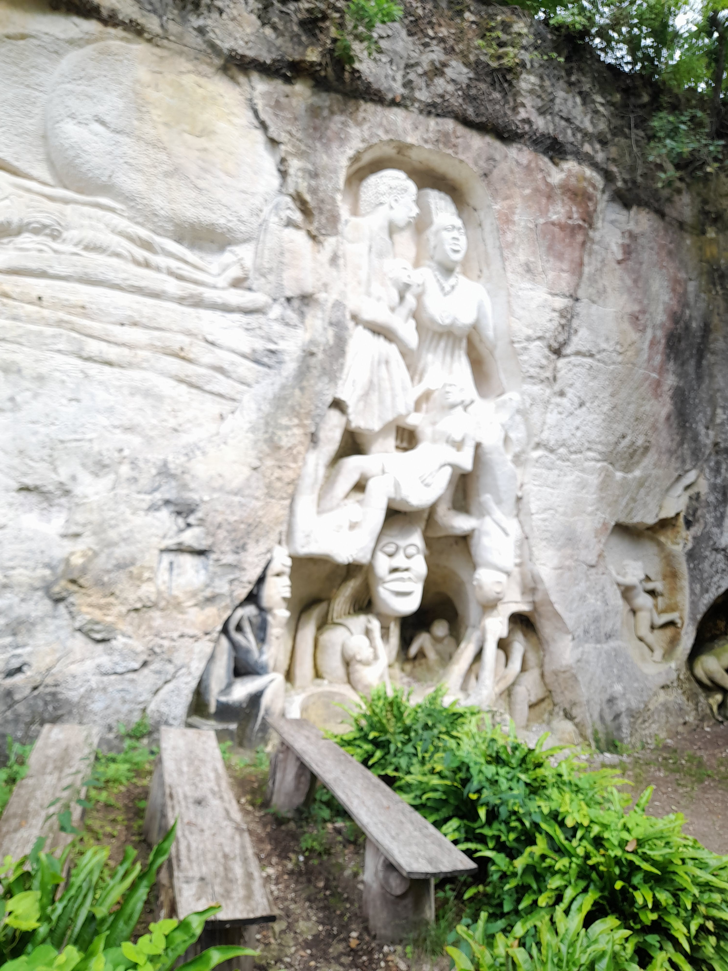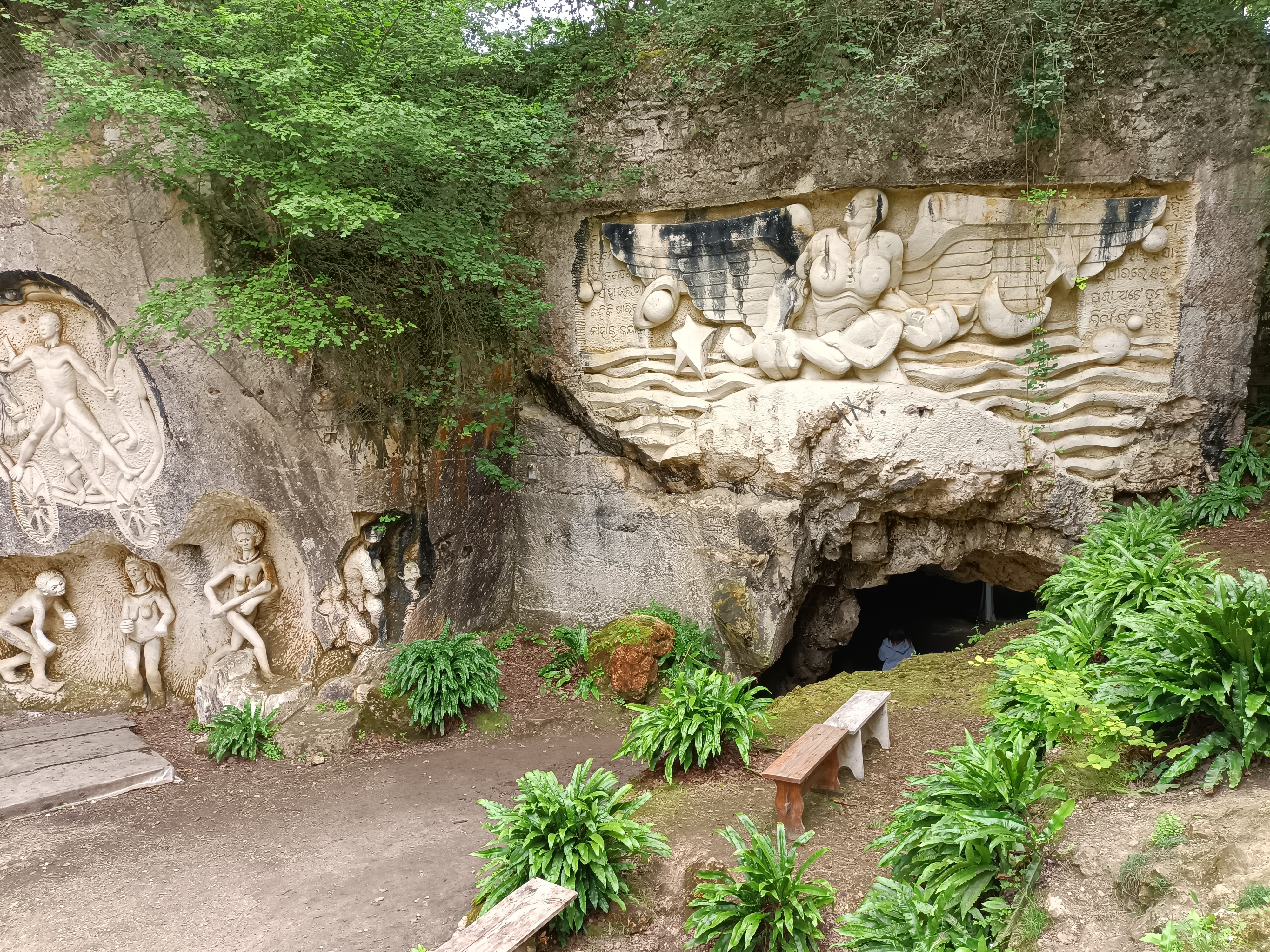 Endroit atypique, étonnant, les sculptures à même la roche sont impressionnantes,elles interpellent par leur qualité. Le chemin bordé de plantes tropicales ajoute à la magie du lieu. Je recommande.