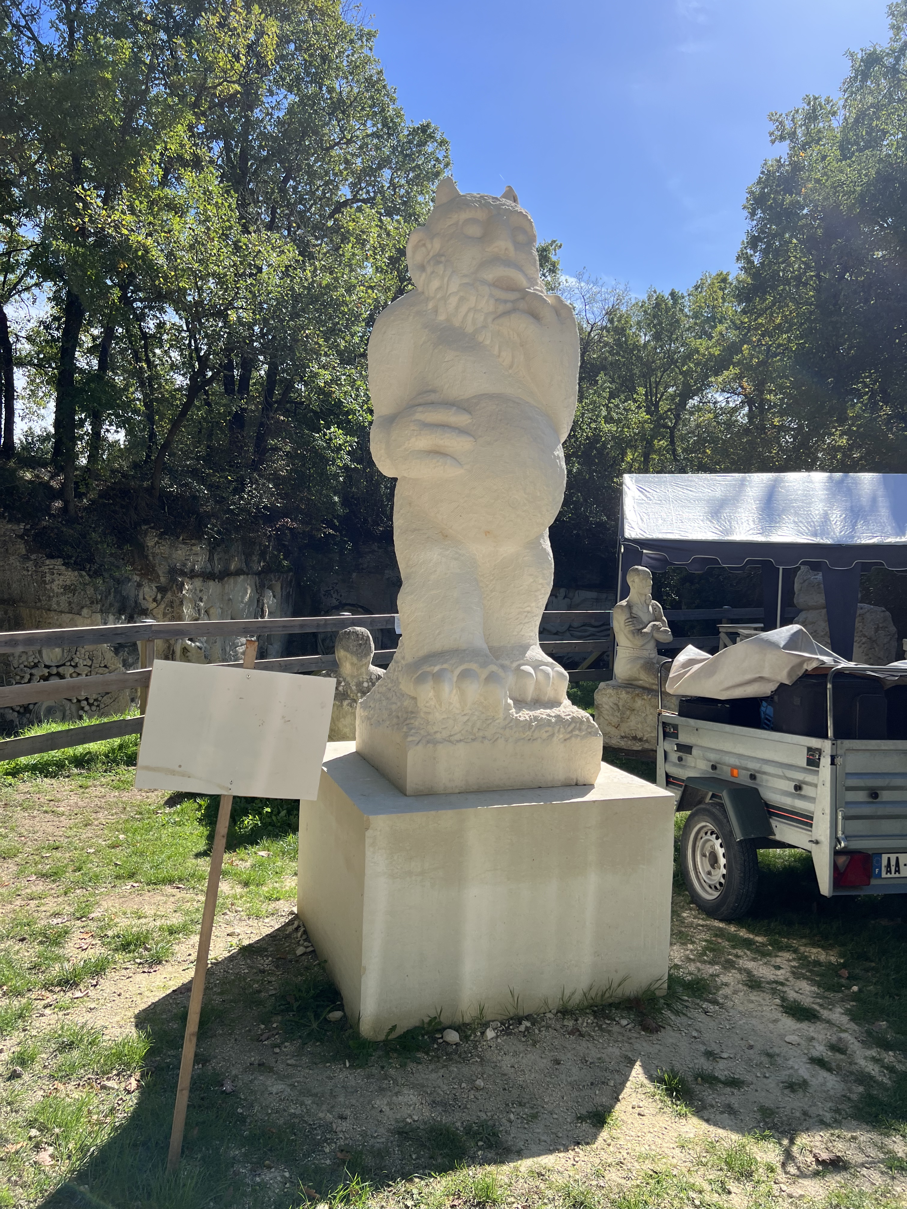 Bel endroit en campagne avec parking proche, jolie statues de pierres, voir les sculpteurs sur place travailler si minutieusement c’est magnifique et très intéressant la balade est un peu courte à mon goût mais c’était un réel plaisir