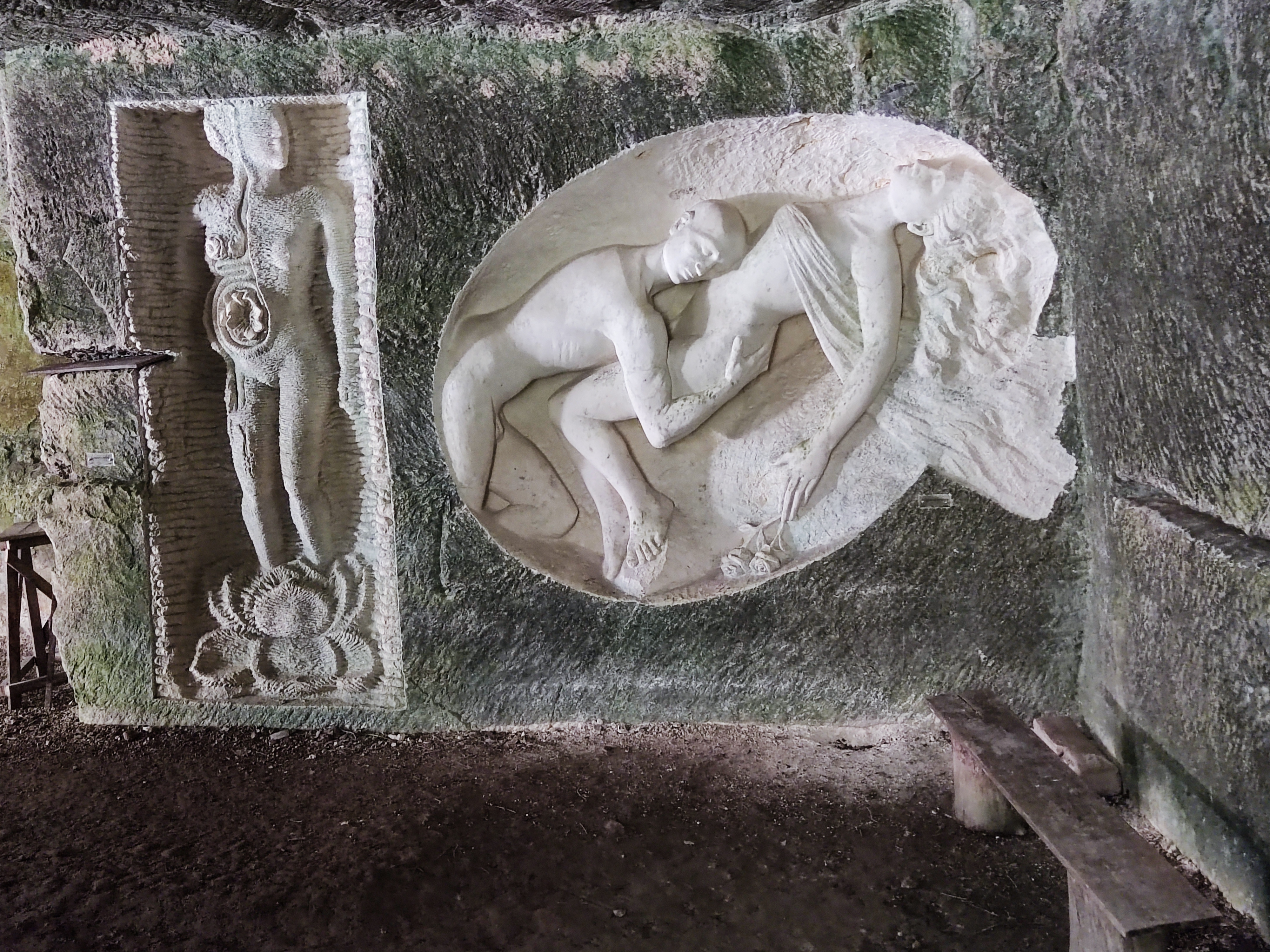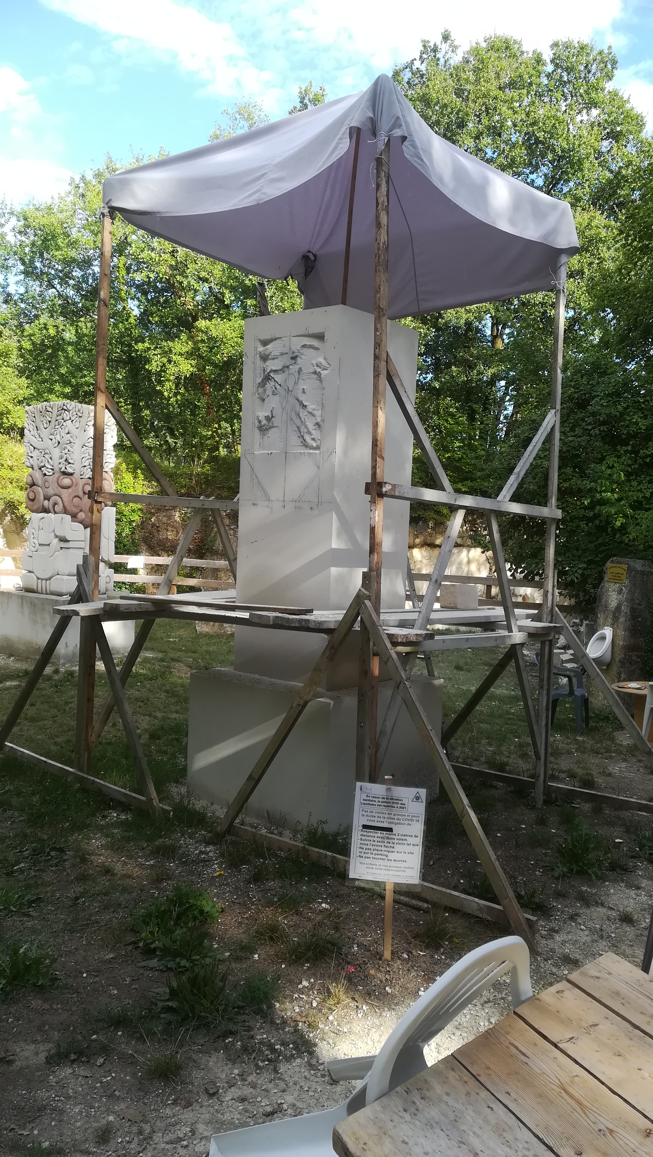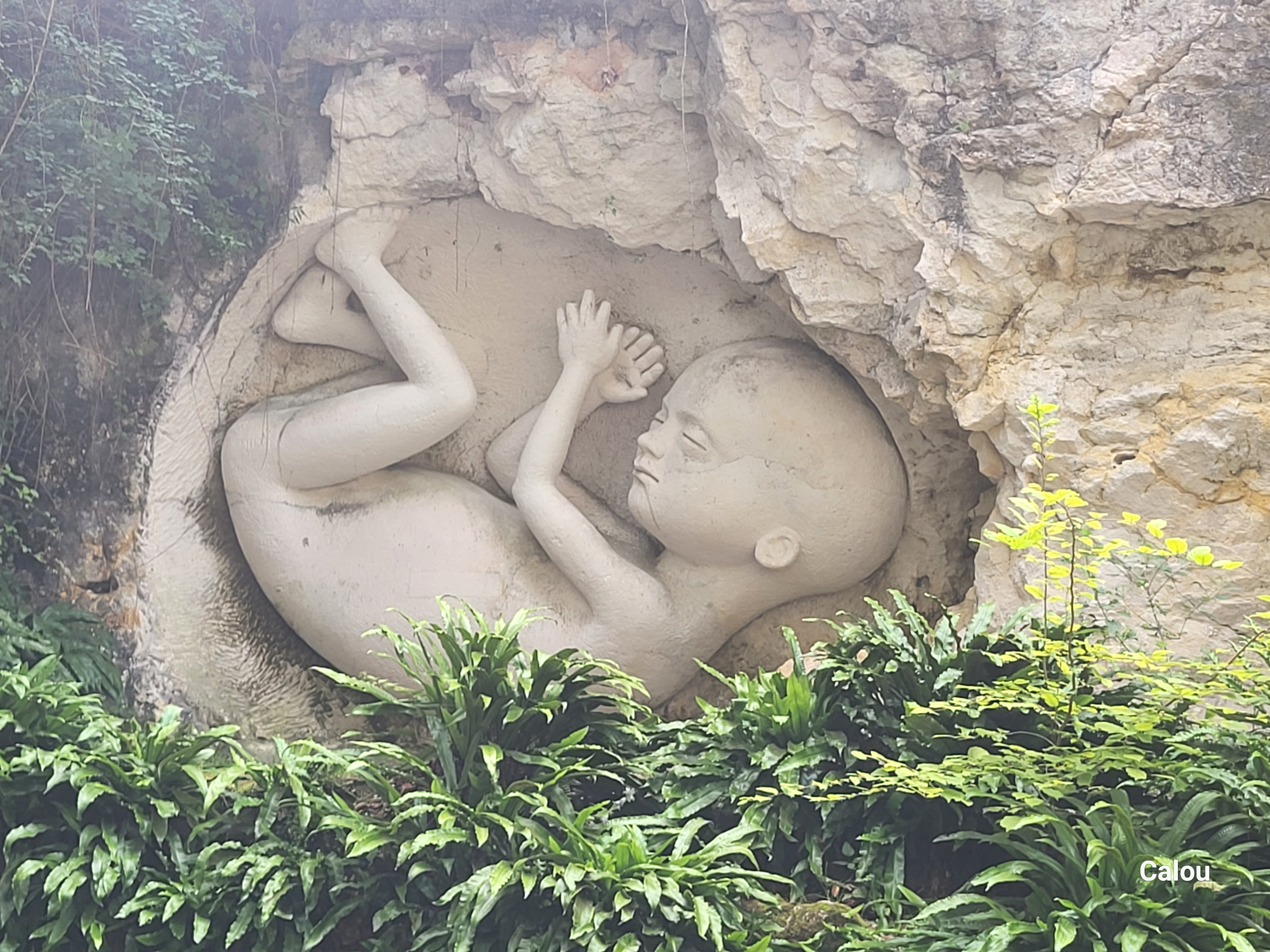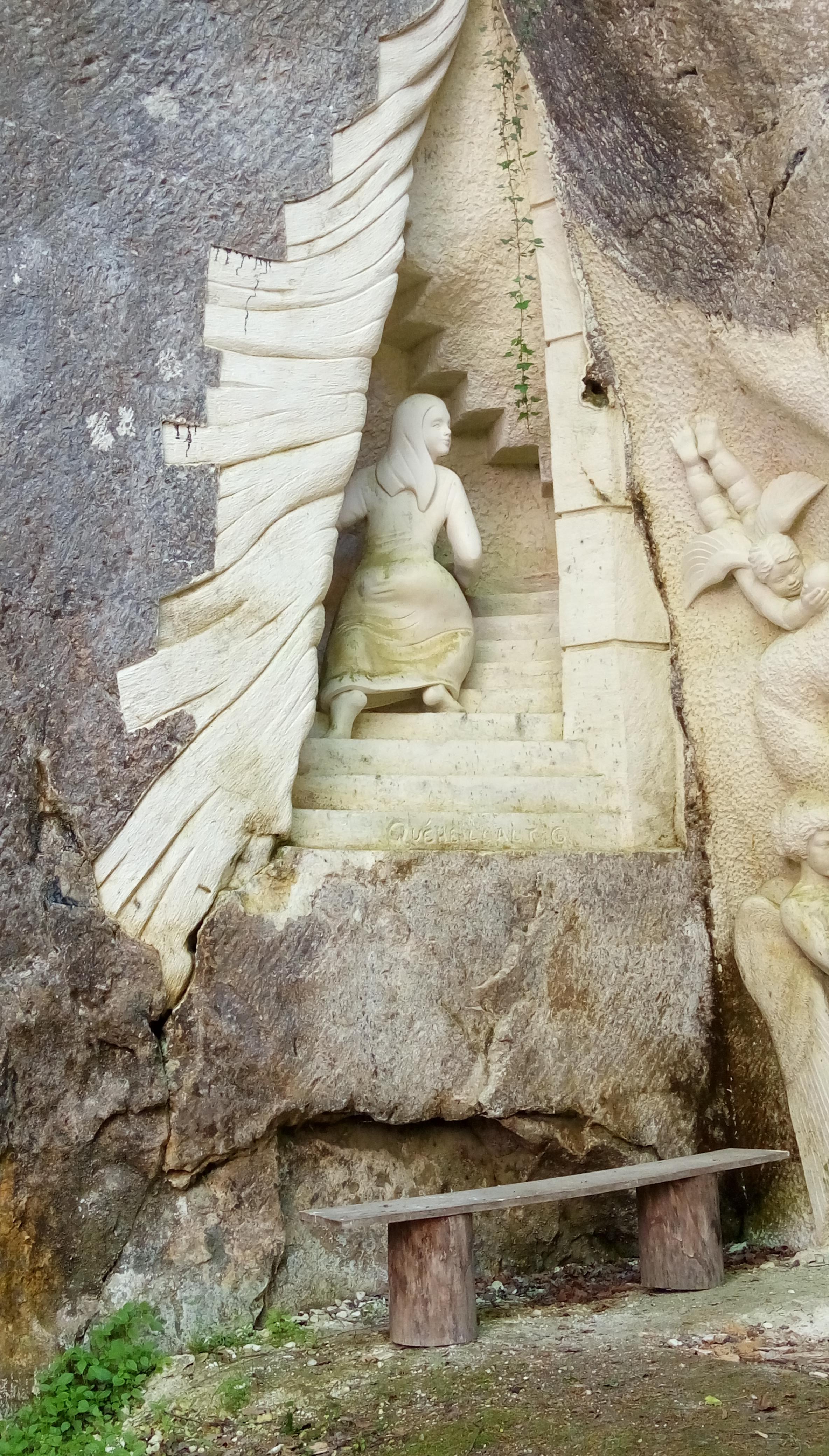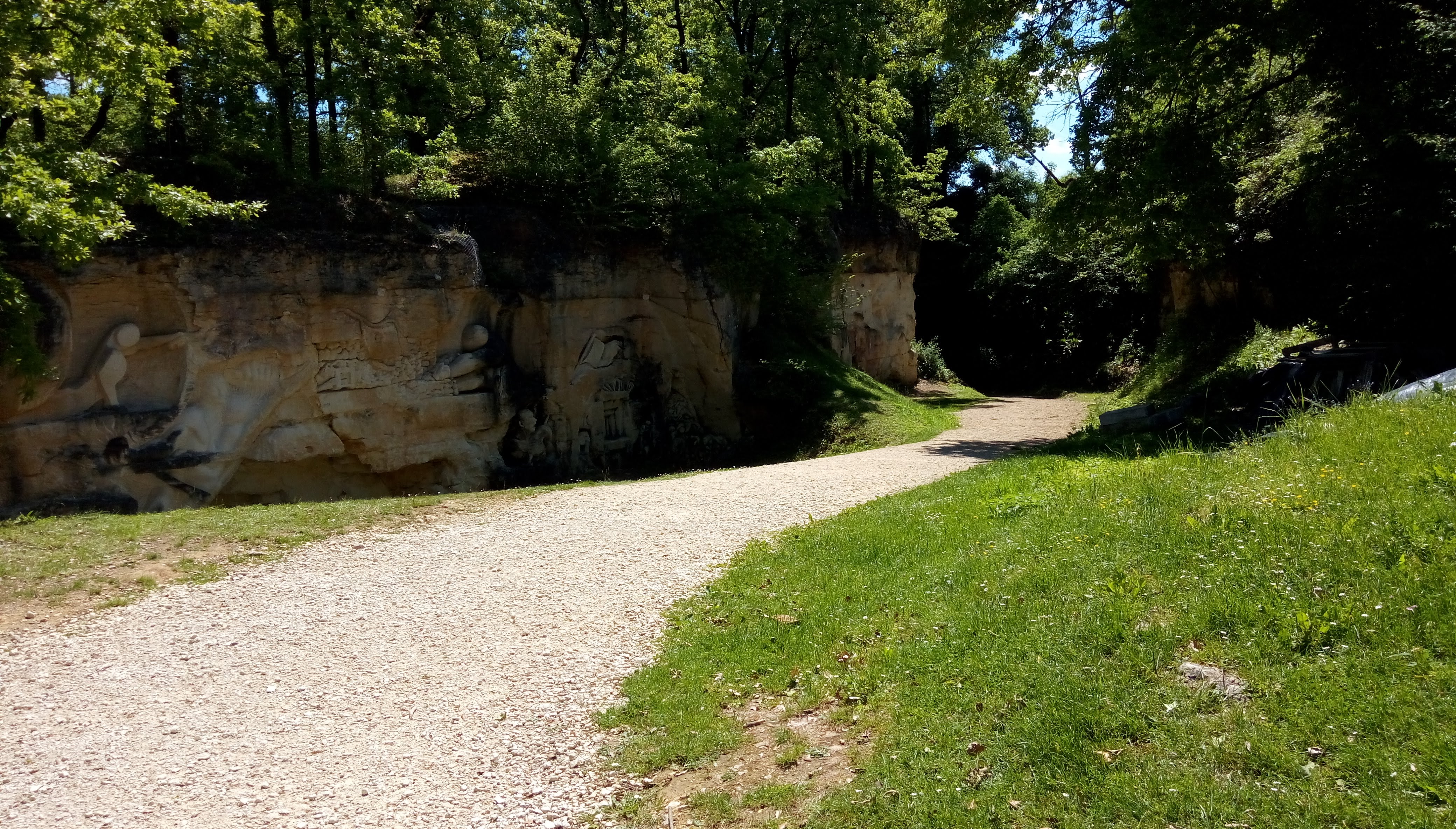 Un lieu atypique calme frais avec parking... jolie sculpture dans une carrière
