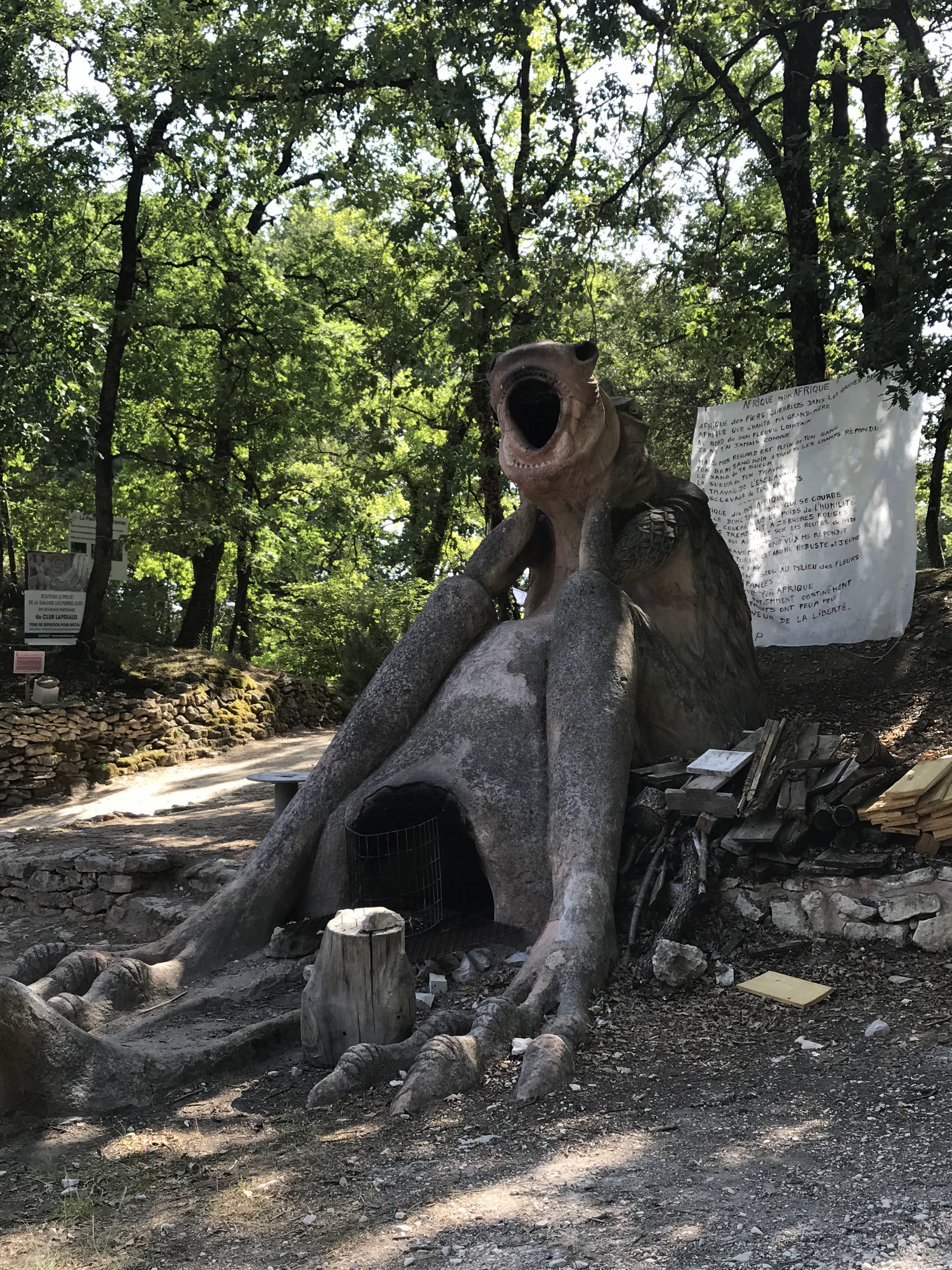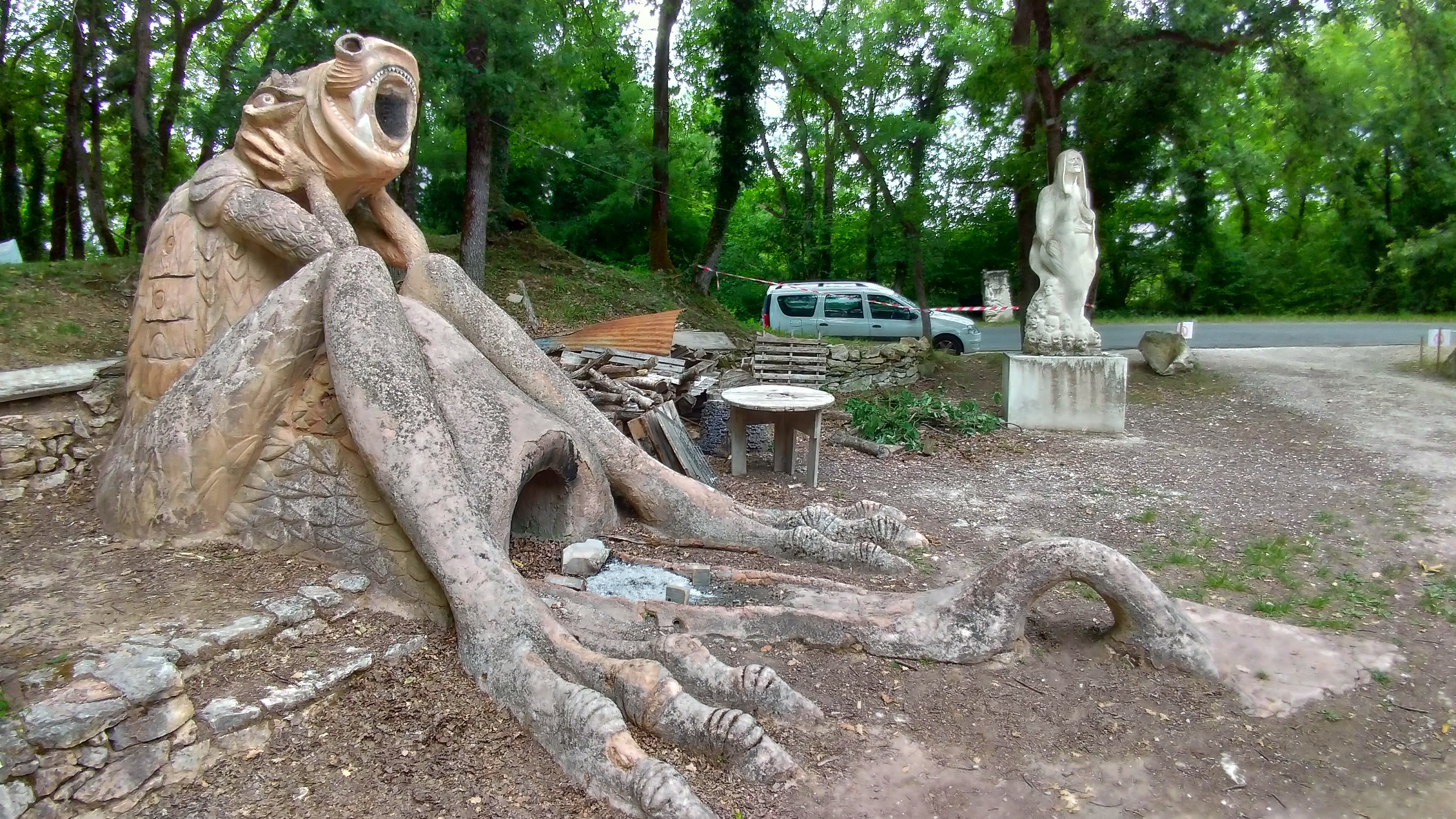 Extraordinaire lieu de sculpteurs en résidence, avec nombre d'œuvres surprenantes, petite buvette bienvenue