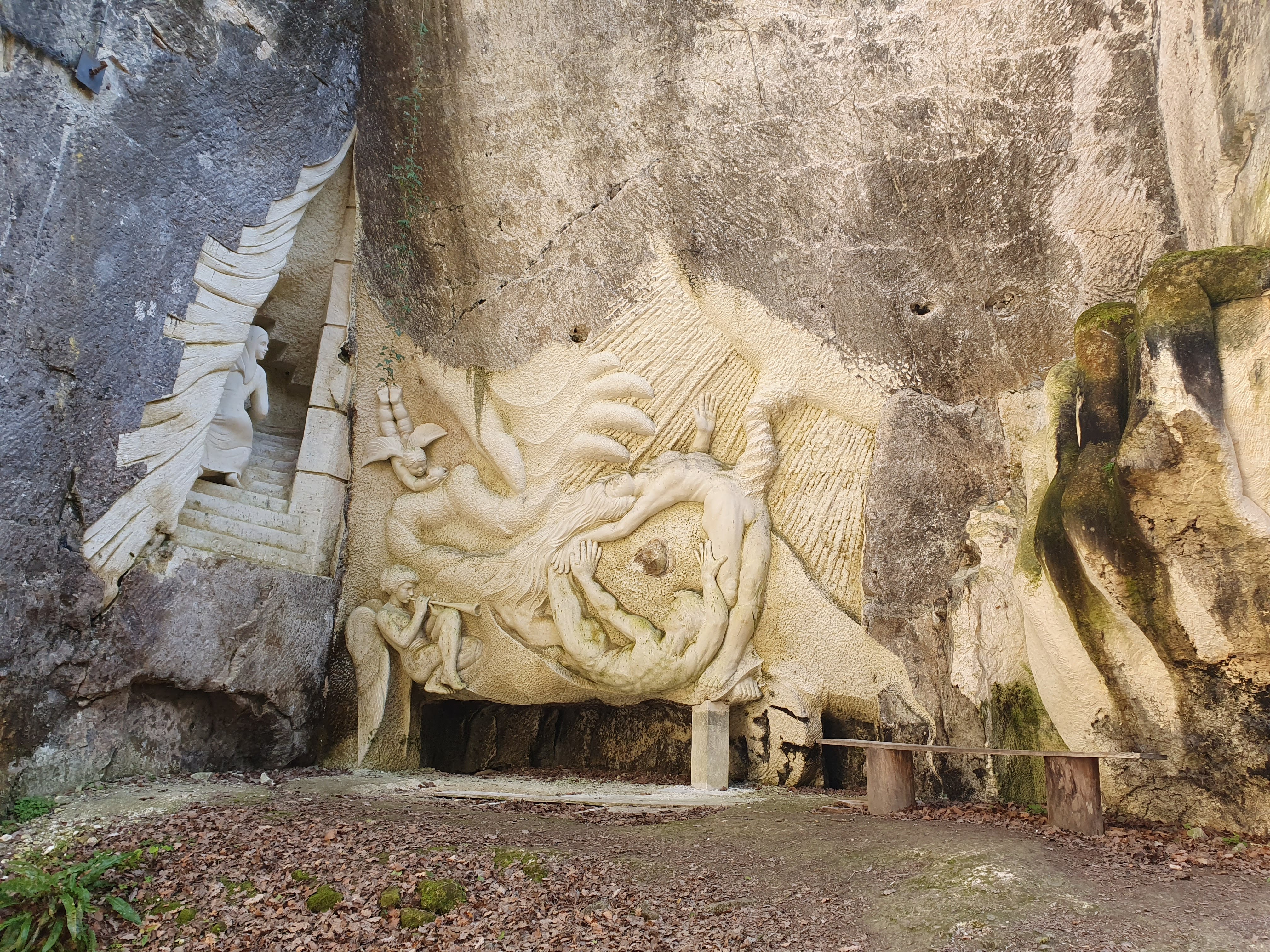 Lieu de méditation et monde imaginaire taillé dans la roche.Une petite promenade qui met en valeur l'art des sculpteurs. Plongez-y