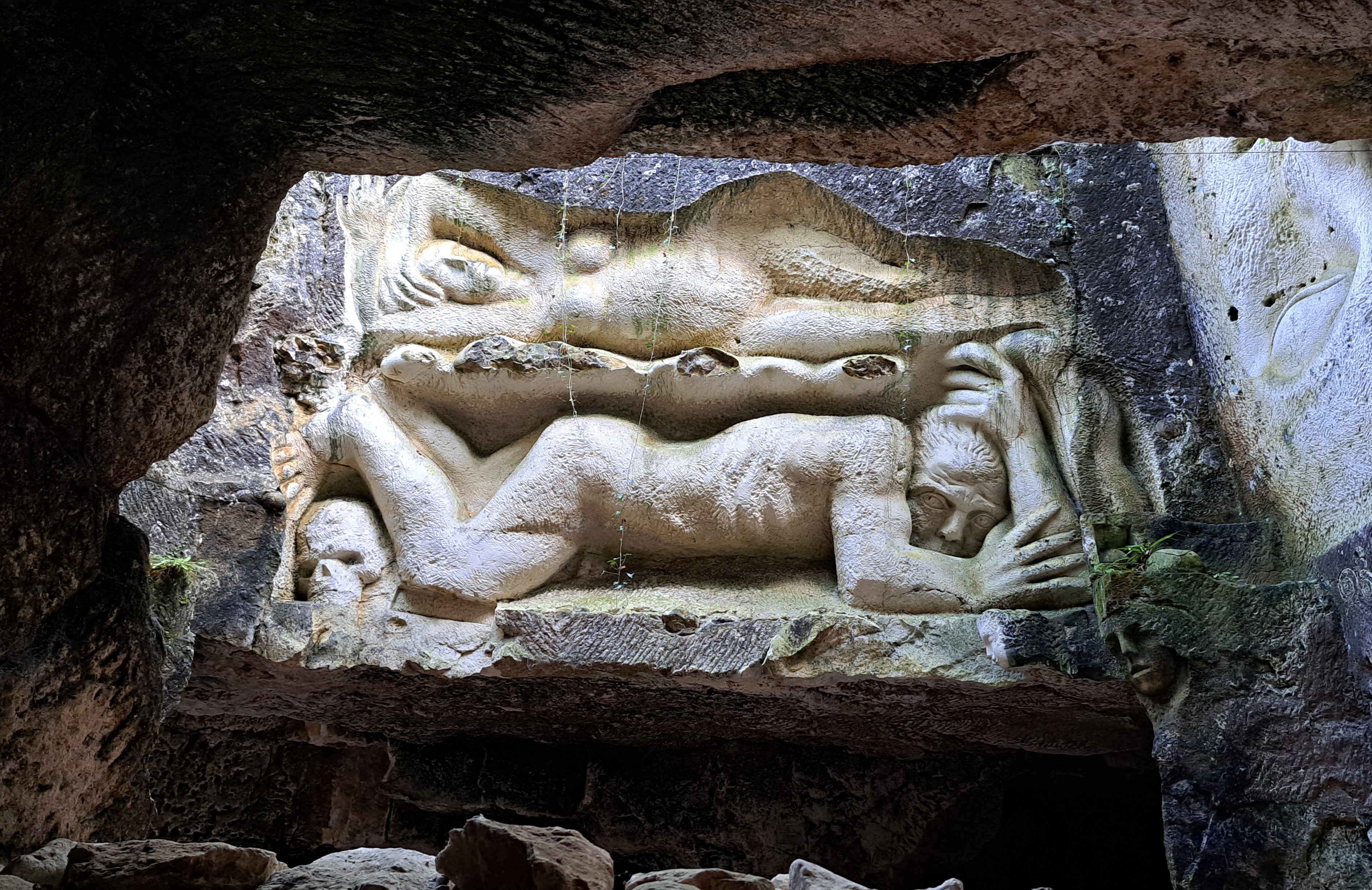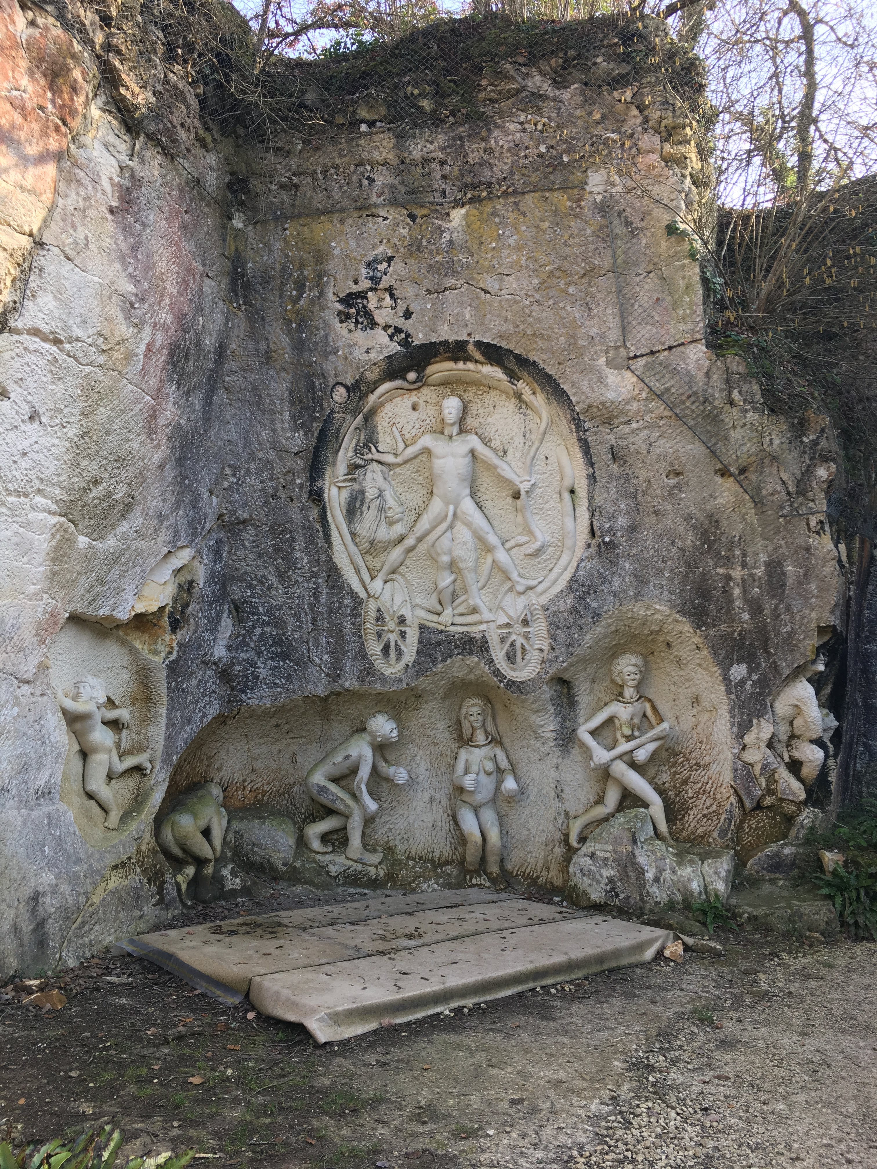 Un lieu poétique et curieux que j'ai eu l'occasion de visiter lors de mon tour de France en solitaire à vélo. Une magnifique découverte. Les sculptures sont taillées à même la roche.