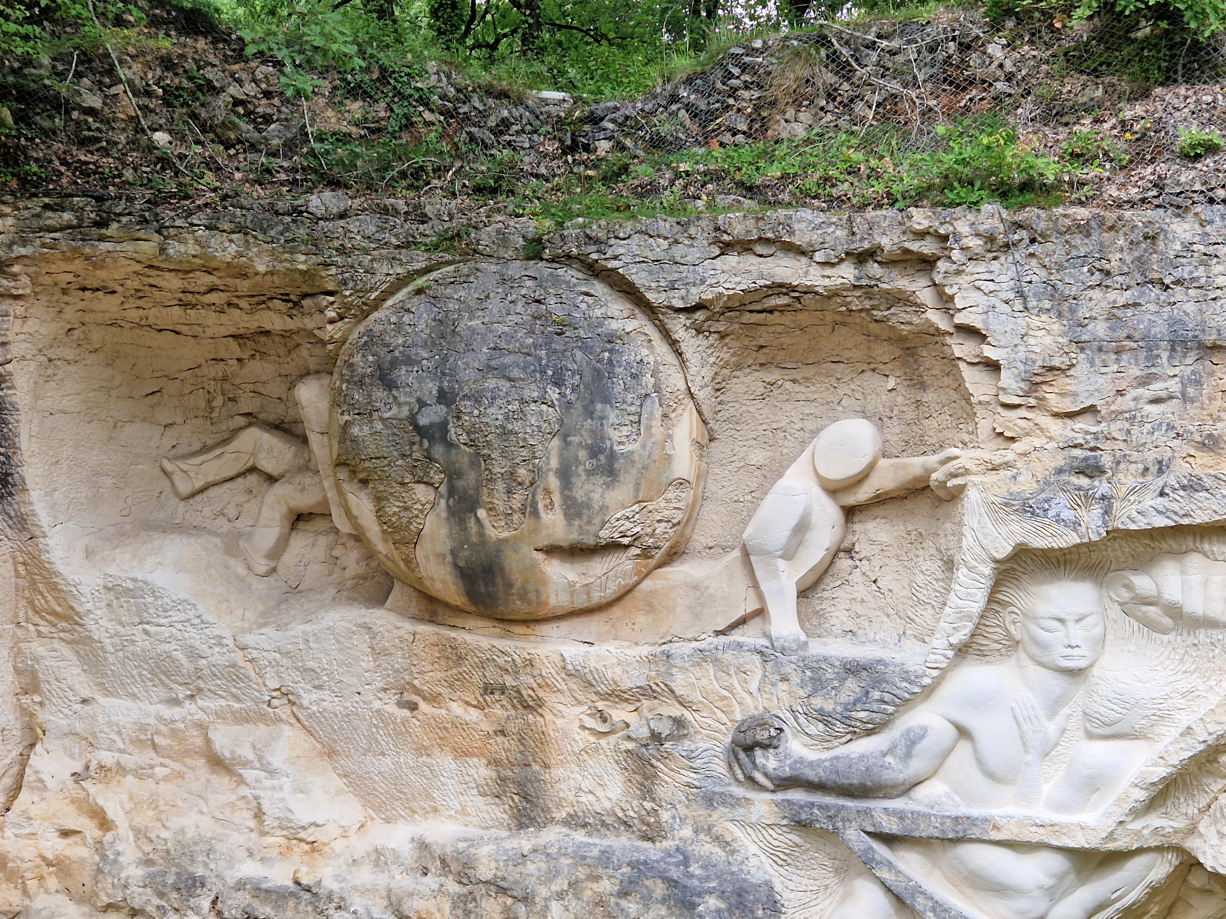 Très belles sculptures taillées dans la pierre d'une ancienne carrière en pleine nature, idée très originale, bravo à tous les sculpteurs de cet endroit magique,